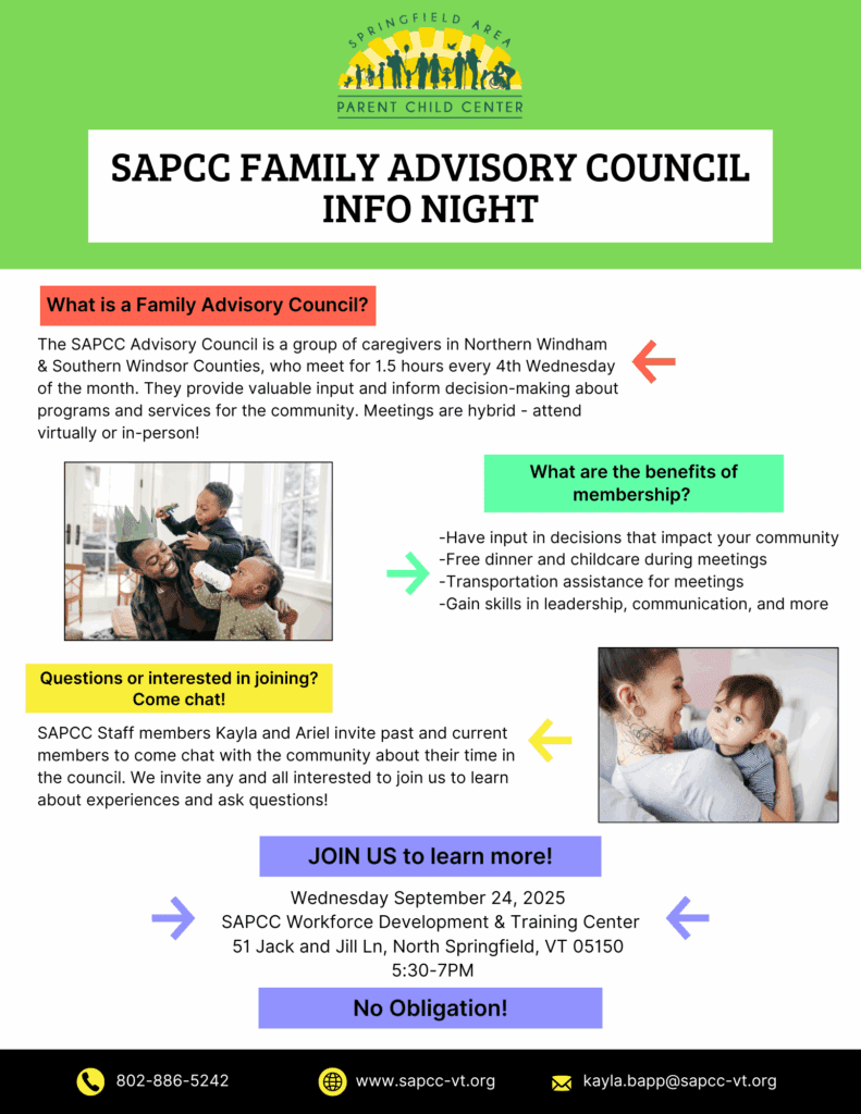 Questions? kayla.bapp@sapcc-vt.org or 802-886-5242